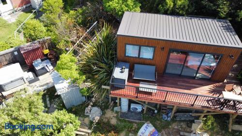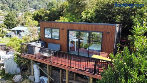 Welcome to your exclusive escape in Picton! Perched high in a private setting among native New Zealand plants, tui, and fantails, this one-of-a-kind dwelling offers breathtaking panoramic views over the township and harbor. Despite its cozy size, this romantic retreat is perfect for couples seeking a unique and luxurious getaway.